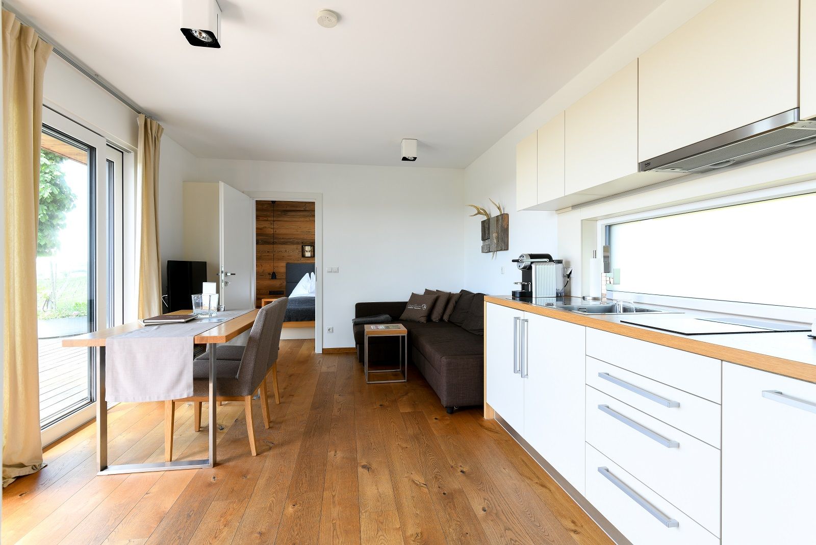 Freistehende Badewanne mit Blick ins GrüneDas dritte Highlight ist die freistehende Badewanne mit Blick in die Natur – perfekt für lange Abende, an denen die Welt draußen bleiben darf. Dazu kommen WLAN, SAT-TV, Klimaanlage und die voll ausgestattete Küche für einen Urlaub im eigenen Rhythmus.