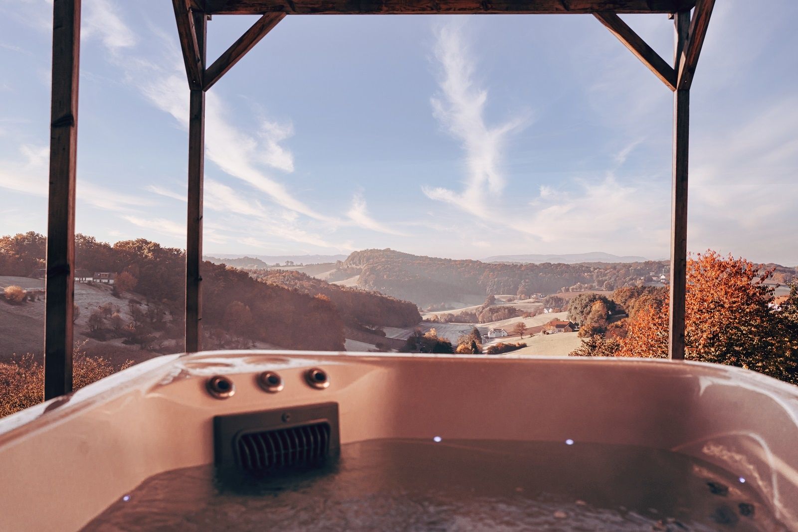Private Spa deluxe: Whirlpool + finnische SaunaHier kommen gleich zwei Klassiker zusammen: ein privater Outdoor-Whirlpool für Sprudelstunden unter freiem Himmel und eine finnische Sauna für Tiefenentspannung. Danach: abkühlen, durchatmen, wieder reinspringen – ganz ohne Zeitfenster.